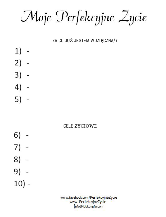 Prosimy o przynoszenie tej listy na każde organizowane przez nas Seminarium. Będzie ona drogowskazem i planami świadomego kształtowania własnej drogi ku Perfekcyjnemu Życiu.